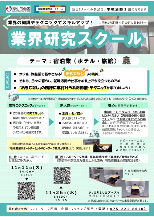 京都の地場産業を中心に、各業界の魅力や働き方、必要なスキルなどを、ハローワーク職員がわかりやすく解説します。