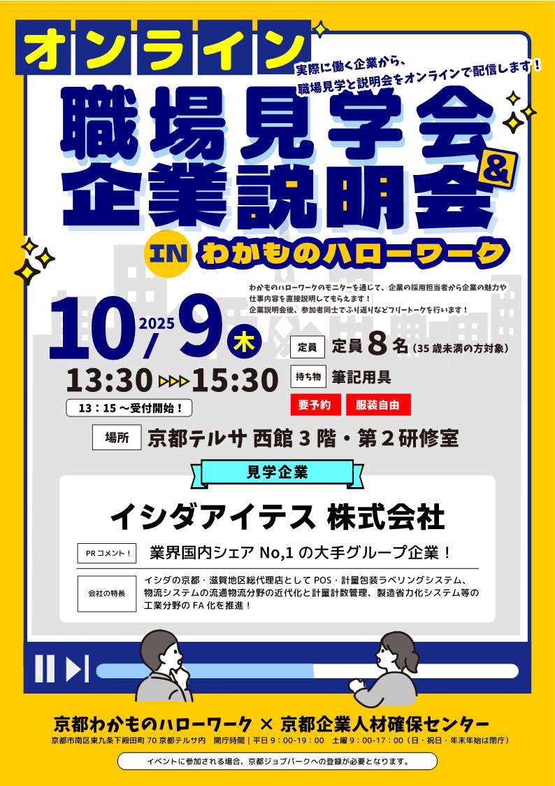 10月9日(木)オンライン職場見学会&企業説明会 in わかものハローワーク