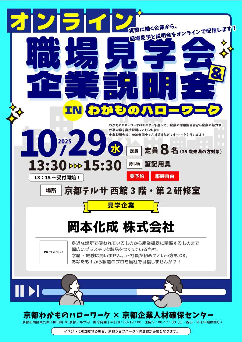 10月29日(水)オンライン職場見学会&企業説明会 in わかものハローワーク