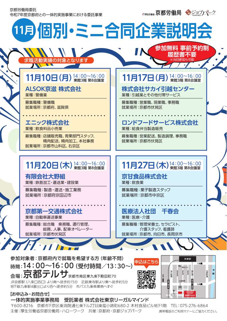 令和7年度 11月開催「個別・ミニ合同企業説明会」のお知らせ