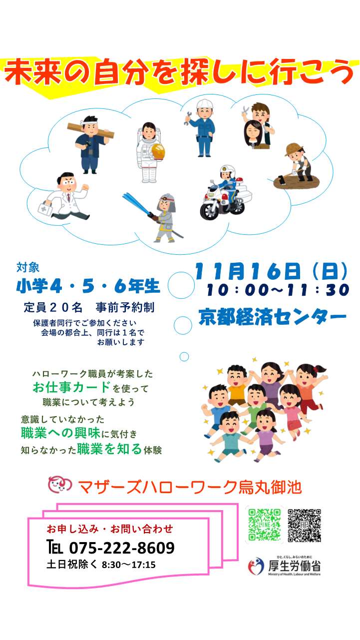 11月16日(日)開催 小学生対象イベント『未来の自分を探しに行こう』~マザーズハローワーク烏丸御池~