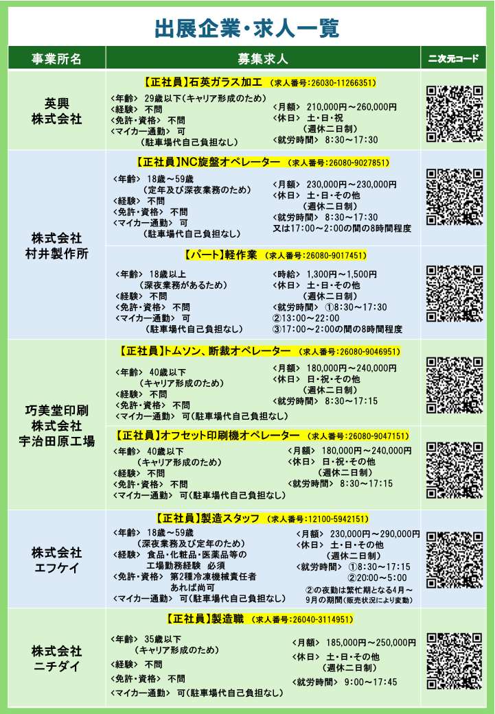 10月22日(水)ハローワーク宇治×宇治田原町「合同企業説明会」開催のお知らせ