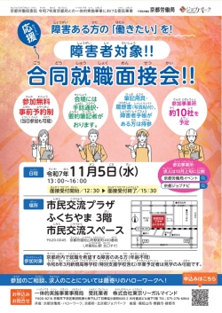 - 11月5日(水)福知山市で障害者を対象とした面接会を開催いたします。