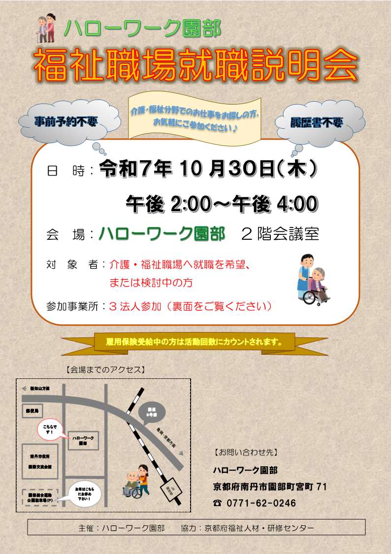ハローワーク園部において、以下のとおり福祉職場就職説明会を開催します。