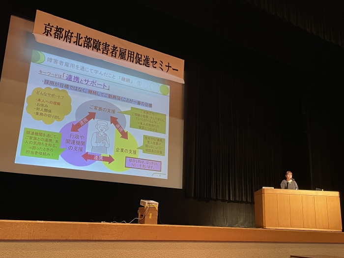 障害者雇用の推進に向けた取組や支援の在り方について学び、考える機会の場として「京都府北部障害者雇用促進セミナー」を開催しました。