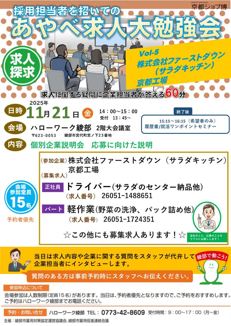 採用担当者を招いての『あやべ求人大勉強会』開催いたします。