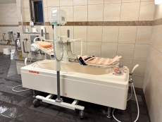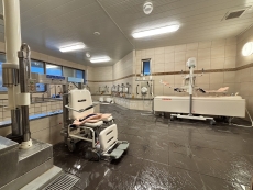 【ストレッチャー式特殊浴槽】 【事業場の見学を行う参加者の皆さん】 【 バスリフト 】
