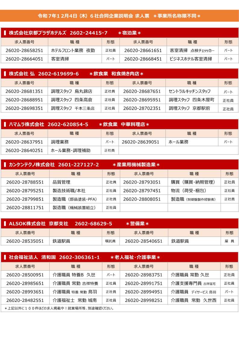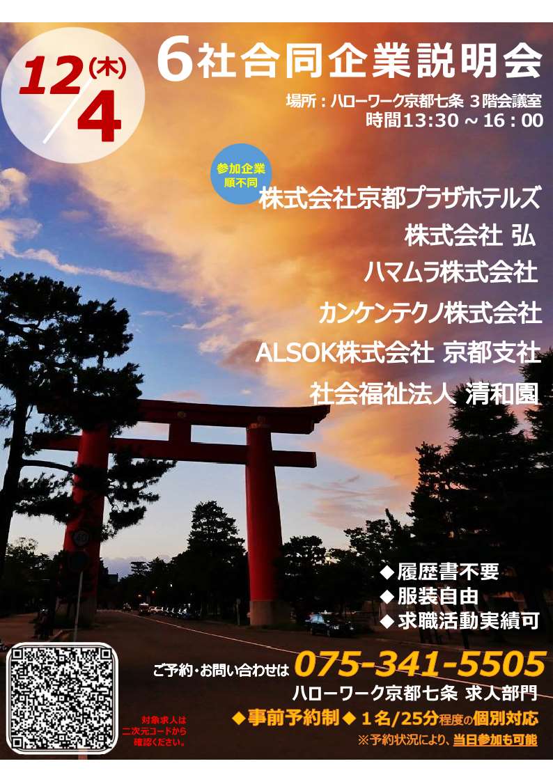 日時:令和7年12月4日(木)13時30分~16時00分 場所:ハローワーク京都七条 3階 大会議室