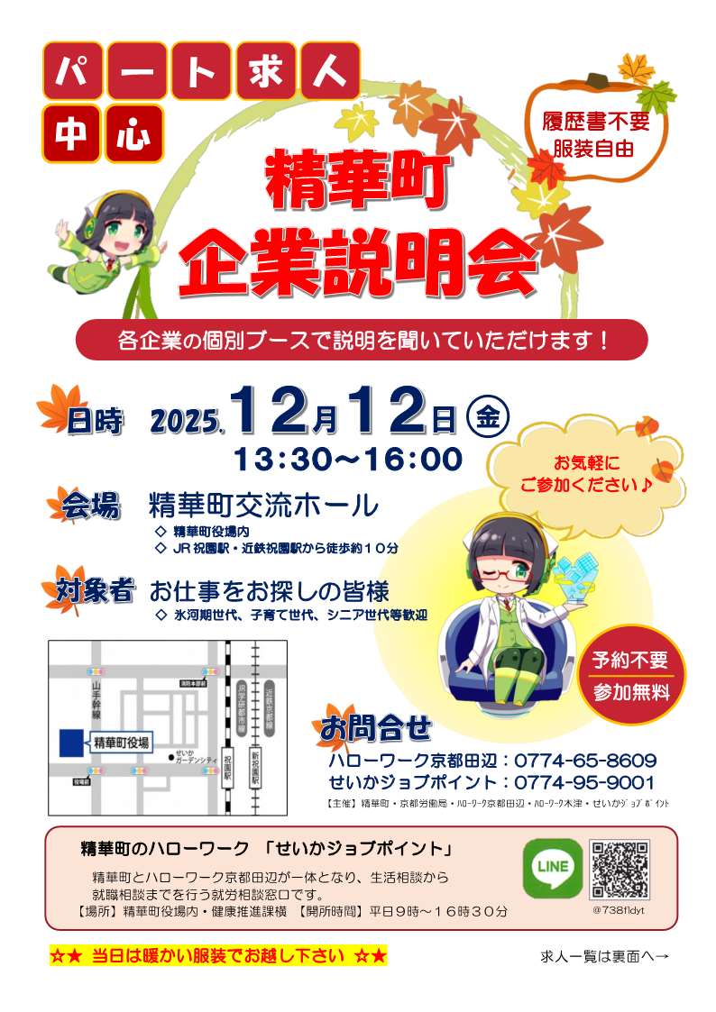 12月12日(金)パート求人中心「精華町企業説明会」開催!(精華町交流ホール)