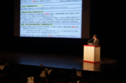 この他、監督課から京都労働局における労働基準法の概要に加え、前年度の長時間労働が疑われる事業場に対する監督指導の結果、認められた法違反の実態について説明を行いました(右)。