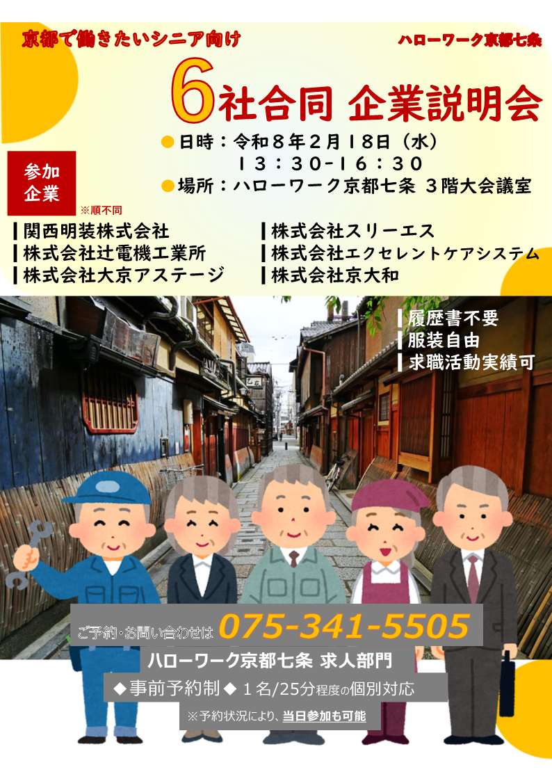 日時:令和8年2月18日(水)13時30分~16時00分 場所:ハローワーク京都七条 3階 大会議室