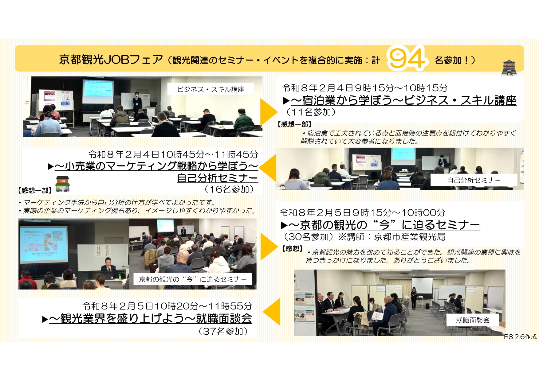 「京都観光JOBフェア」と「タクシーJOBフェア」、両フェア(2/4~2/6)でなんと合計146名の方にご参加いただくことができ、地場産業(観光関連、タクシー)の魅力を多くの方に伝えることができました!