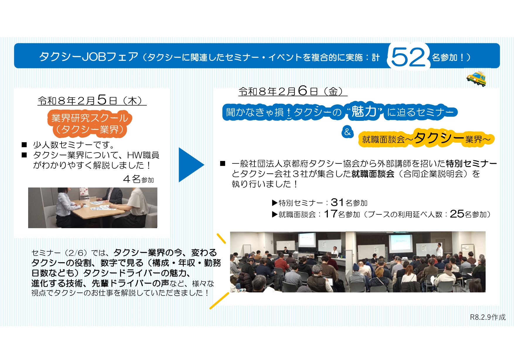 そして、2月5日から6日にかけて、「タクシーJOBフェア」として、「タクシー」に関連した業界研究セミナー、就職面談会を実施しました。
