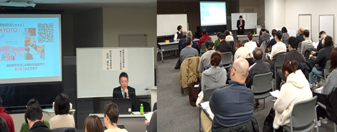 具体的には、2月4日から5日にかけて、「京都観光JOBフェア」として、「観光」に関連した業界研究セミナー、就職面談会(観光業界を盛り上げよう)を実施しました。