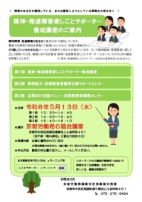 5月13日(水)京都労働局で「精神・発達障害者しごとサポーター養成講座」を開催いたします。