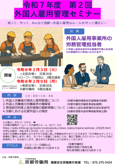 令和8年2月9日(月)14:00~16:40 京都労働局6階会議室(会場参加またはオンライン)