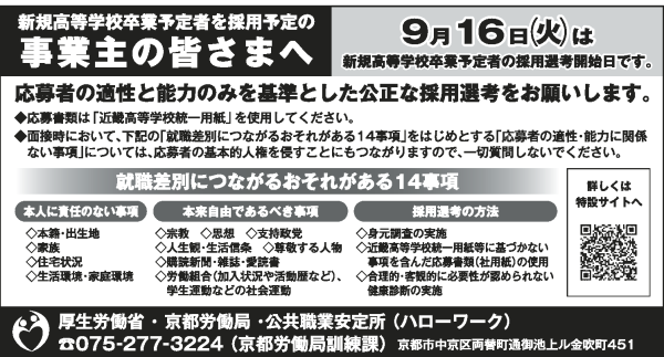 京都労働局 職業安定部職業対策課 | 075-275-5424 |