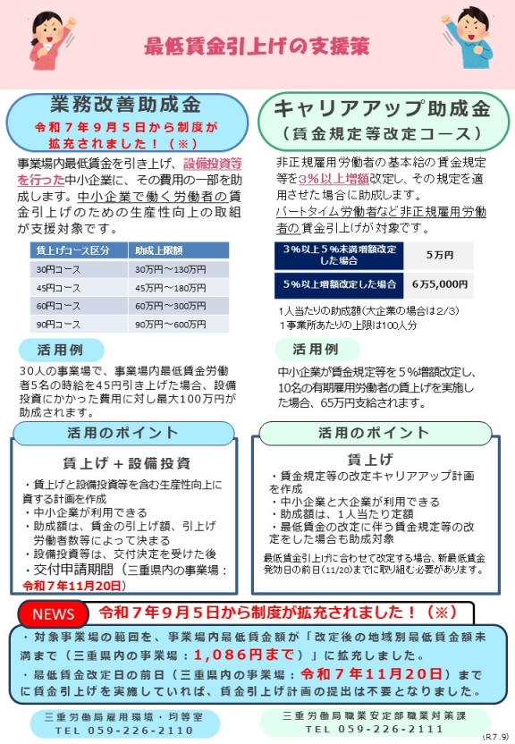業務改善助成金拡充のリーフレット(三重県内の事業場版)はこちら