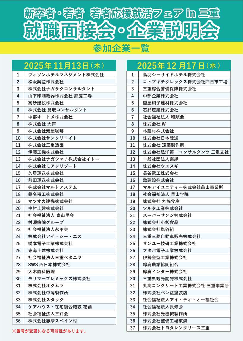 「働きたい!がきっと見つかる 若者応援就活フェアin三重」令和7年11月13日(木)及び 12月17日(水)を開催します