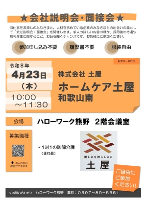 ▶ホームケア土屋 和歌山南の求人確認はこちらから。