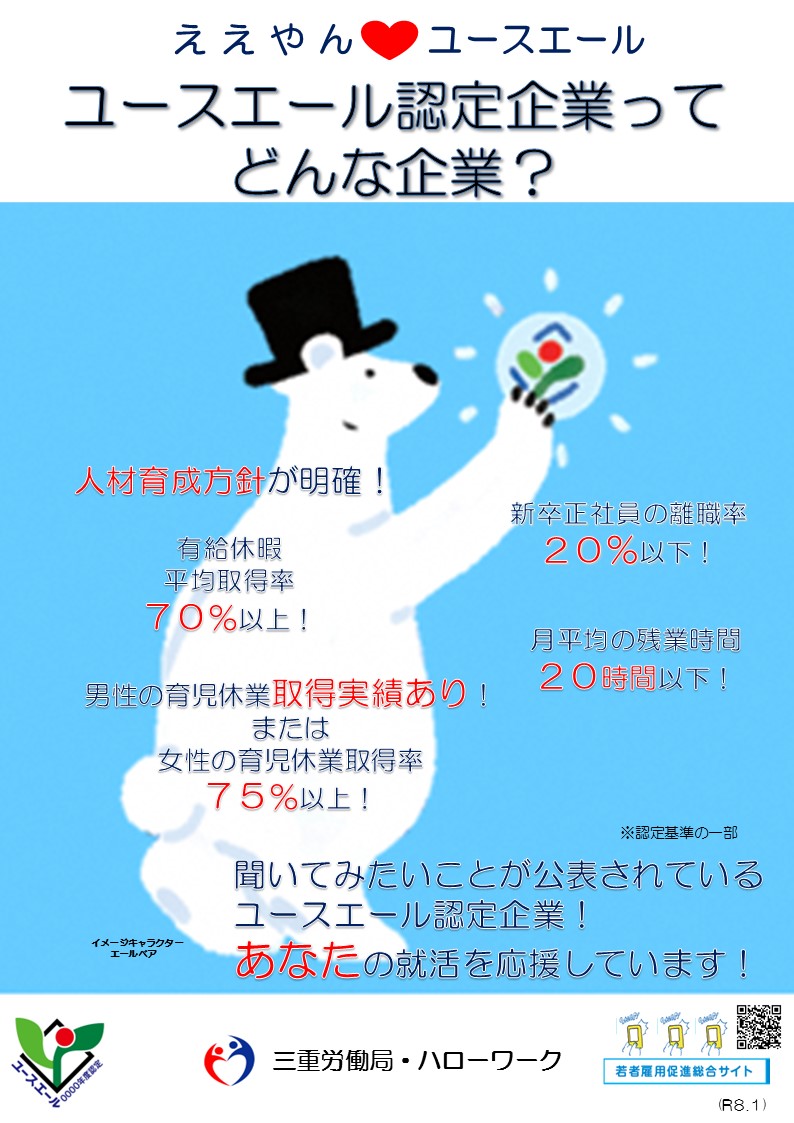 三重(他 都道府県)労働局に申請し、厳しい審査を受けて「厚生労働大臣」が認定した企業です。