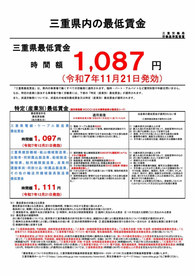 ・ 三重県内の最低賃金[ PDF - 223KB ]