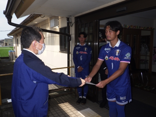 SAFEサポーターの委任状を受け取る濱田選手と安田選手
