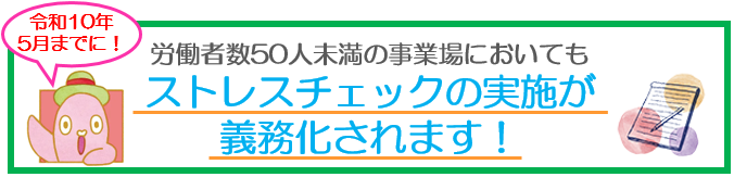 New!- 労働者数50人未満の事業場(小規模事業場)におけるストレスチェックの実施については、当分の間の特例措置として「努力義務」とされていますが、令和7年5月14日に公布された改正労働安全衛生法によりこの特例措置が終了となり、小規模事業場においてもストレスチェックの実施が義務化されます。施行日は「公布日より3年以内」とされており、現時点で未定ですが、遅くとも令和10年5月には施行される運びとなります。