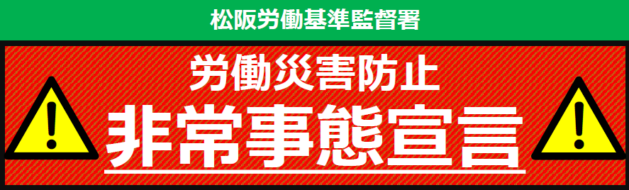 - このような状況を受け、松阪労働基準監督署では、下記リーフレットにより、「松阪労働基準監督署 労働災害防止非常事態宣言」を発出することといたしました。