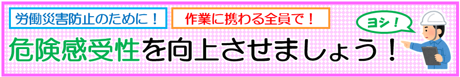 New!- 労働災害を防止するためには、設備面の対策(覆いやインターロックの設置等)や管理面の対策(作業管理、教育等)に加え、作業に携わる全員(作業者はもちろん、事業者、管理職、職長、作業指揮者等を全ての関係者を含みます)が、作業に関する基本ルール(関係法令、ガイドライン、作業手順等)を遵守するとともに、ヒヤリハット、危険予知活動、危険体感教育(疑似体験)等により「危険感受性」を高め、安全衛生行動を確実に実施しなければなりません。