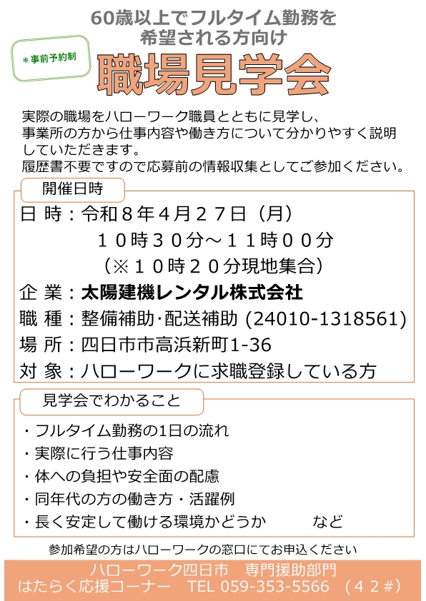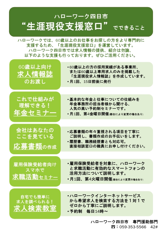 詳しくはハローワーク四日市専門援助部門へお問い合わせください。
