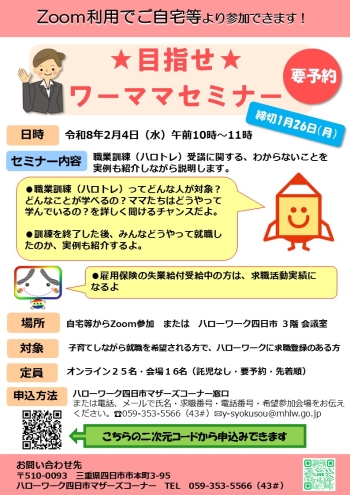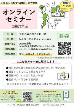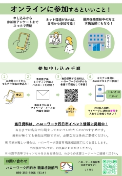 参加方法:Zoomによるオンライン参加又はハローワーク四日市3階会議室