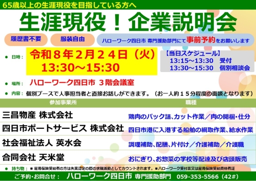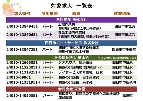 予約方法:ハローワーク窓口、電話 059-353-5566(42#)