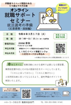 場所:ハローワーク四日市 3階会議室(オンライン視聴)