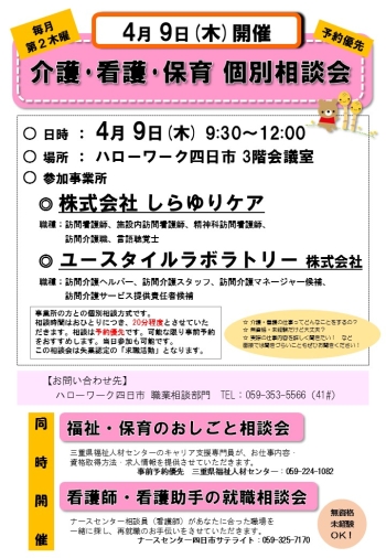 「看護・介護・保育 個別相談会」