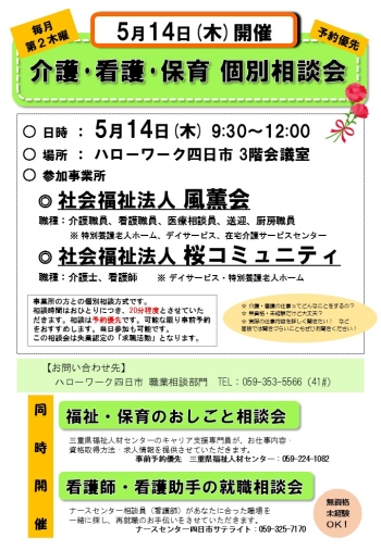 ※同時開催の福祉・保育のおしごと相談会も予約優先です。