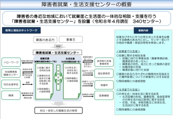 障害者就業・生活支援センターは、障害者の職業生活における自立を図るため、雇用、保健、福祉、教育等の関係機関との連携の下、障害者の身近な地域において就業面及び生活面における一体的な支援を行い、障害者の雇用の促進及び安定を図ることを目的として、全国に設置されています。