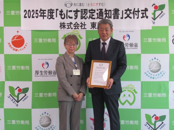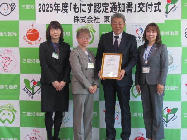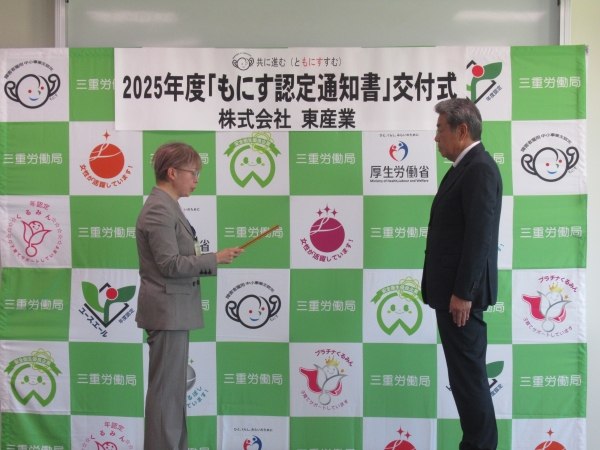 障害者の雇用の促進等に関する法律に基づく認定企業として、ミツイバウ・マテリアル株式会社を認定し、令和7年12月15日に認定通知書交付式を行いました。