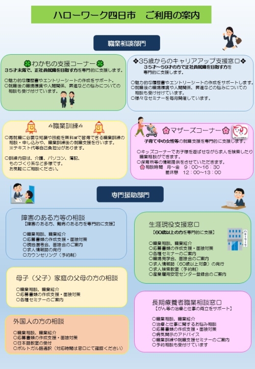 ●求人冊子(直近の求人情報)を更新! ●2月度 イベントカレンダーを追加!! ●2月度 就職相談会予定を追加!! ●2月12日(木)介護・看護・保育個別相談会開催!(参加企業:(株)W、(株)ワンプレイス) ●2月24日(火)生涯現役(65歳以上の方対象)企業説明会開催!(参加企業:三昌物産(株)、四日市ポートサービス(株)、(福)英水会、(合)天米堂)