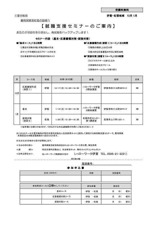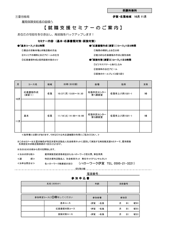 - ハローワーク伊賀 セミナー・イベント情報