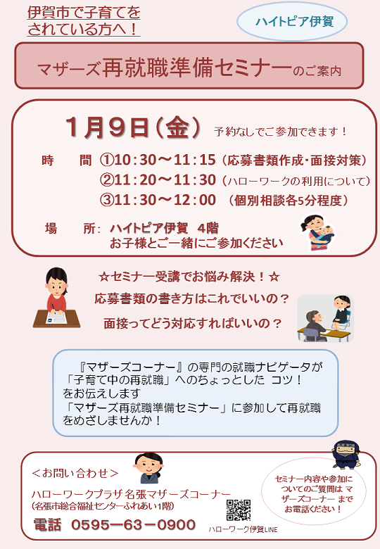マザーズ再就職準備セミナー(ハイトピア伊賀4階)