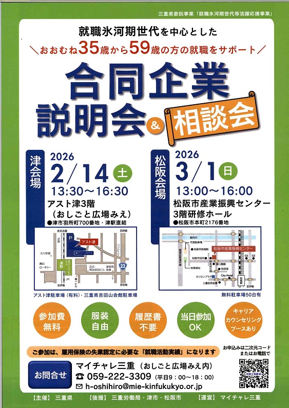 ◎画像をクリック・タップするとマイチャレ三重の合同企業説明会&相談会WEBサイトが開きます◎