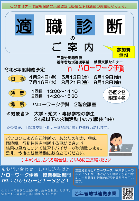 令和8年度 適職診断セミナーのご案内(若年者地域連携事業)