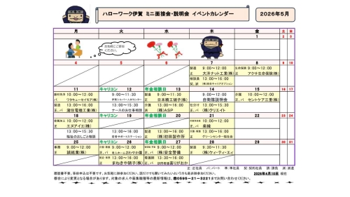 開催日程や参加校など、最新の情報はハローワーク伊賀の窓口またはお電話でお問い合わせください。