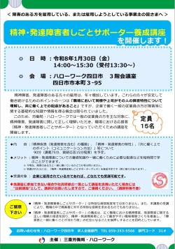 - 令和8年1月30日(金)精神・発達障害者しごとサポーター養成講座(四日市会場)を開催します!