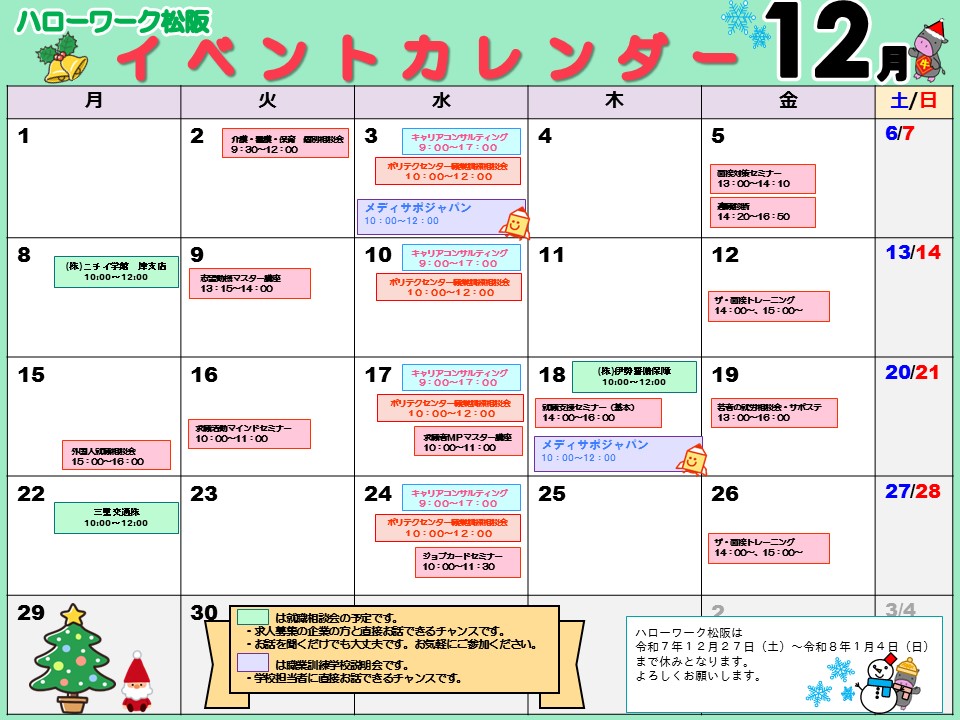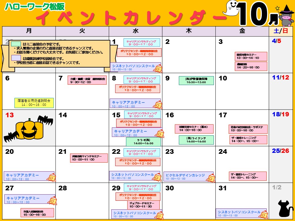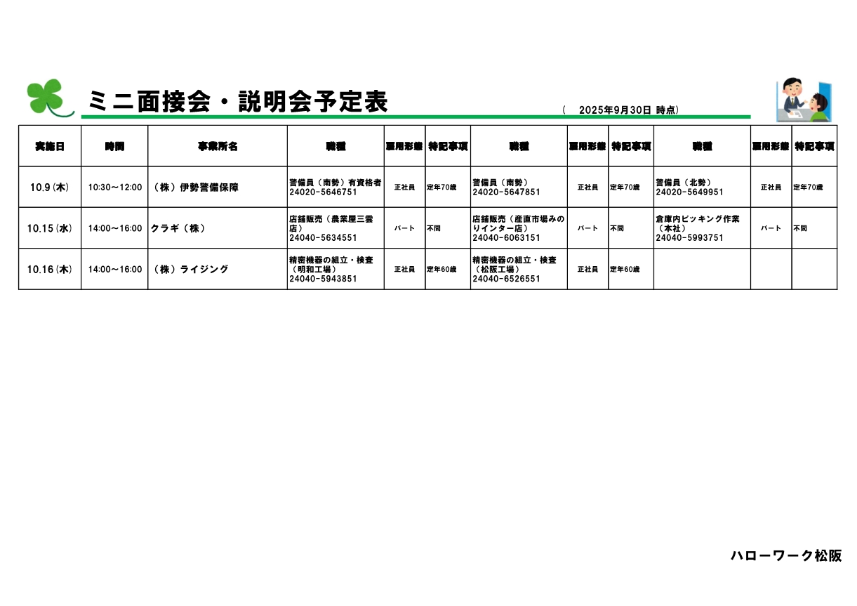 ※ミニ面接会の対象求人については、当日変更や取消しとなることがあります。ご了承ください。