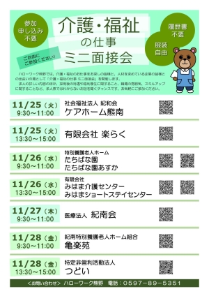 ・介護職員(フルタイム) ・訪問介護員(パート) ・サービス提供責任者 (フルタイム) ・放課後児童クラブ支援員 (パート) |