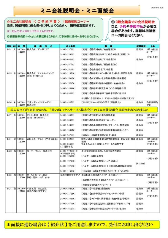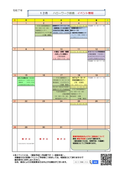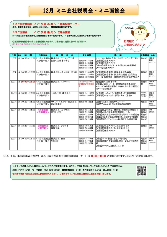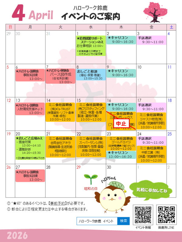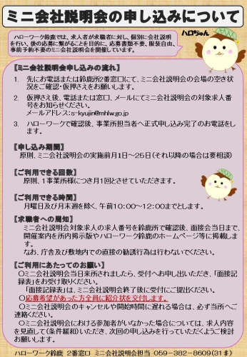 - ハローワーク鈴鹿 イベント情報 求人情報