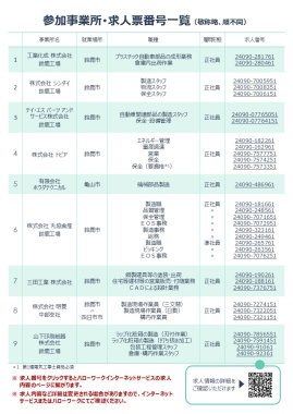 新着だけではなく現在有効中の求人、鈴鹿市、亀山市以外の求人もこちらで確認できます