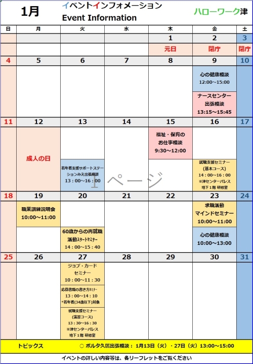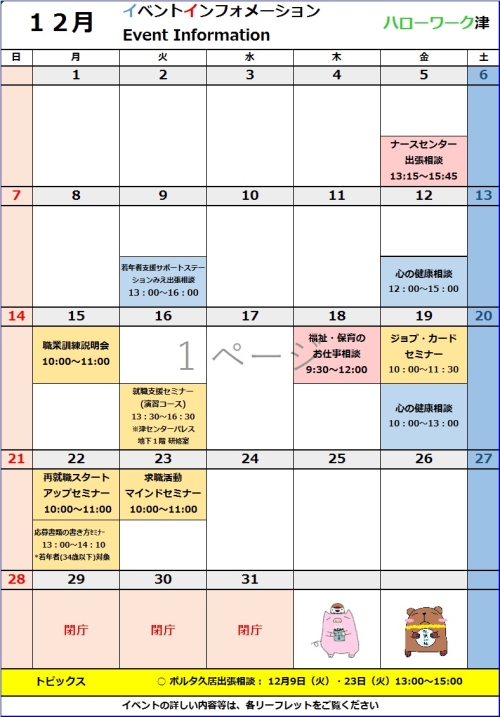 - ハローワーク津イベント情報・求人情報等